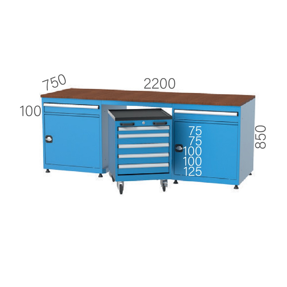 7 çekmeceli, çalışma tezgahları kullanım amaçlarına göre fonksiyonel özellkler ilave edilerek en verimli ve pratik çalışma ortamını sağlar. Demonte edilebilir özelliği bulunan çalışma tezgahları sevkiyatta ve kurulumda kolaylık sağlar. Çalışma tezgahı modellerine istenildiğinde takım asma panosu, florasan ve elektrik panosu ilave edilebilir. Masa üst zeminleri isteğe bağlı olarak, 2 mm siyah pvc, galvaniz sac veya paslanmaz sac kaplama seçenekleriyle de kullanılabilir.