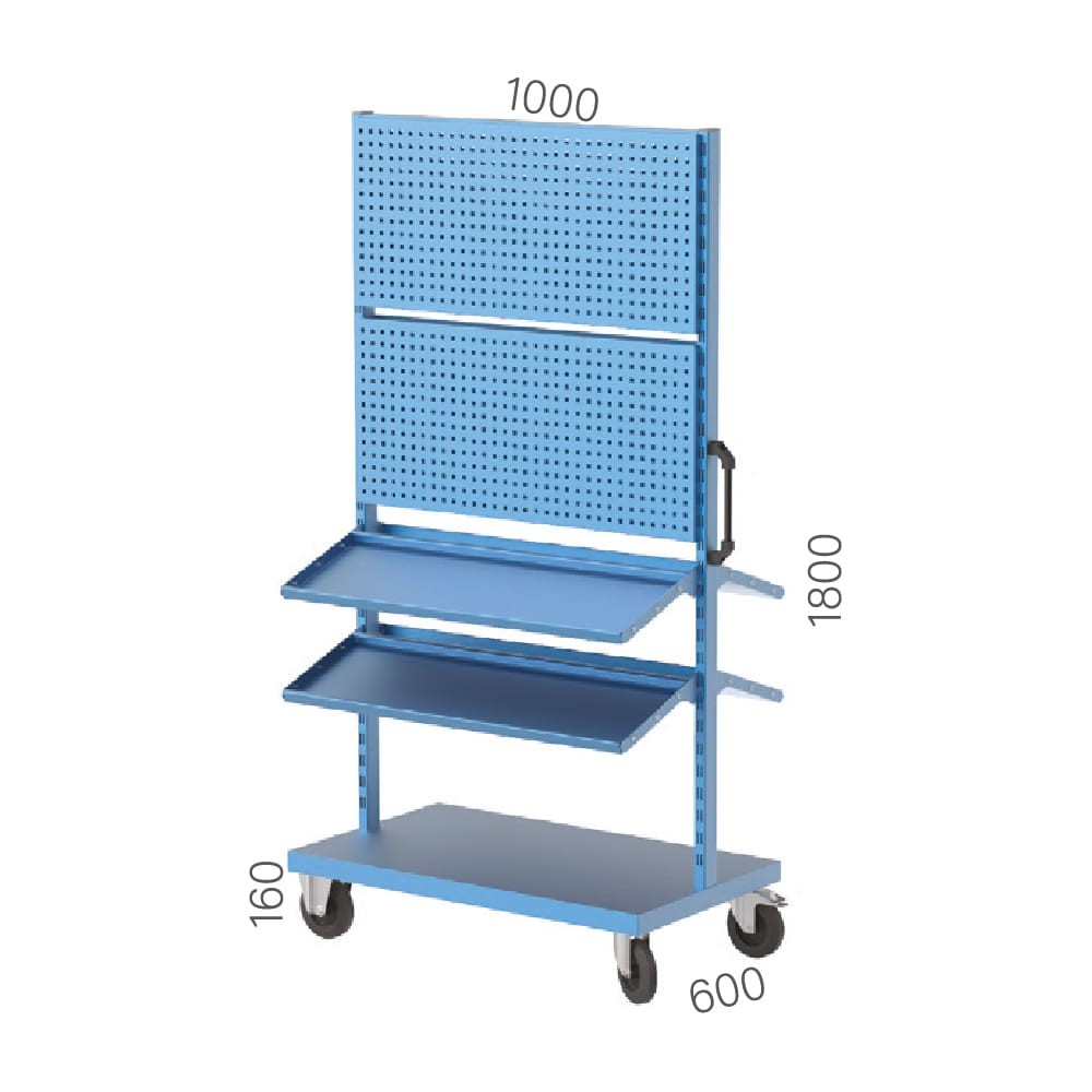 Çift yönlü hareketli, askı panolu standımız; üretim hatlarında malzemeyi hazır bulundurarak iş aksamasını , aynı zamanda depo ve montaj arası zaman kaybını en aza indirger.