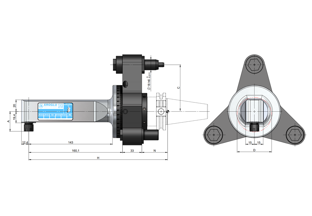 Açılı Kafa 90° Slim 1 Tipi – ER11 Pens Başlığı – Üç Pimli Tork Kolu